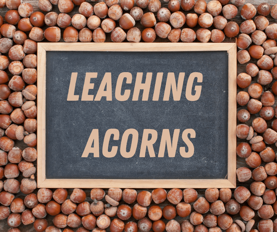 Hot leaching acorns removes the starch, therefore, you must add extra binders to the flour for bake goods so that they don’t fall apart. This is done by boiling the acorns until the tannins are removed, changing the water frequently. It’s basically the same method as cold leaching, just quicker.